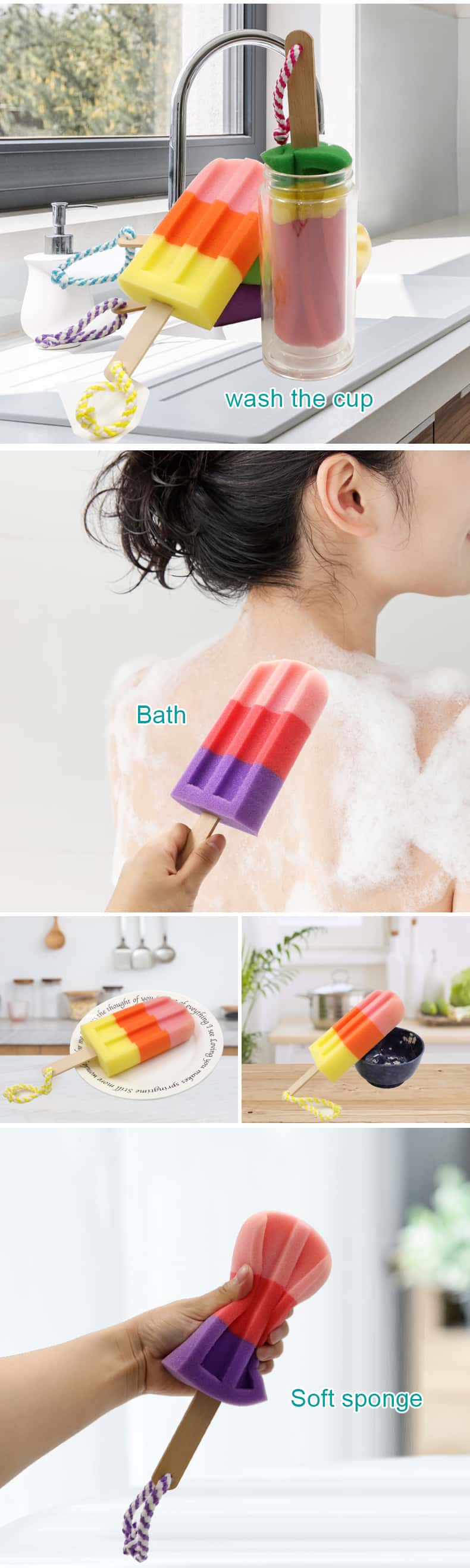하지만 그게 전부는 아닙니다. 목욕 스폰지는 청소가 매우 쉽고 청소 용품을 새로 고치려는 사람들을 위한 도구입니다. 사용이 끝나면 물로 헹구기만 하면 바로 다시 사용할 수 있습니다.