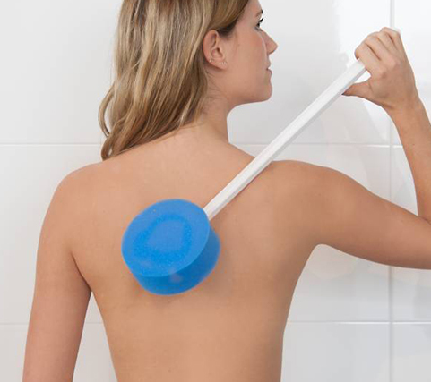 - 당신의 등을 위해: 길고 쓸어내는 동작으로 등을 문지르세요. 이 부분은 닿기 어려울 수 있습니다. 더 쉽게 접근할 수 있도록 손잡이가 긴 스펀지를 사용하는 것이 좋습니다.