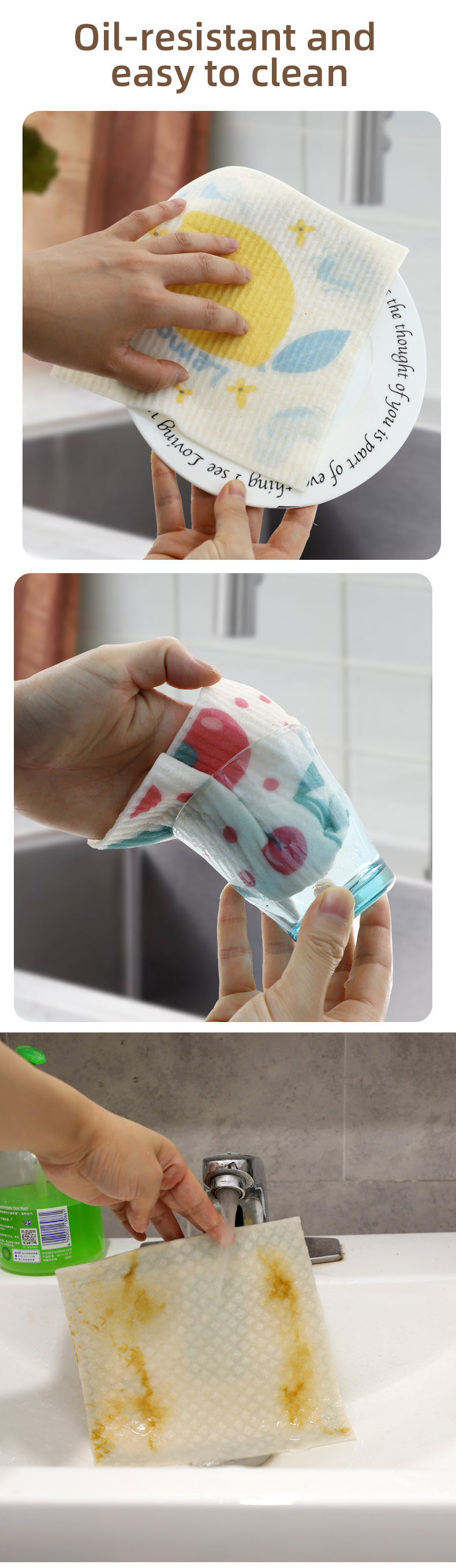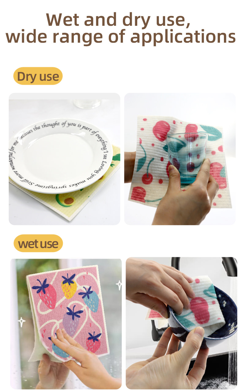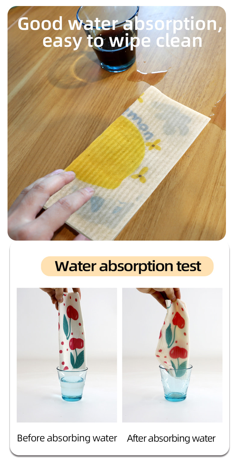천연 셀룰로오스 스폰지 천, 좋은 부드러움, 좋은 물 흡수성, 청소가 쉽고 환경 친화적이며 분해성이 있으며 내구성이 뛰어나고 건조하고 젖어 있으며 기름을 두려워하지 않습니다.