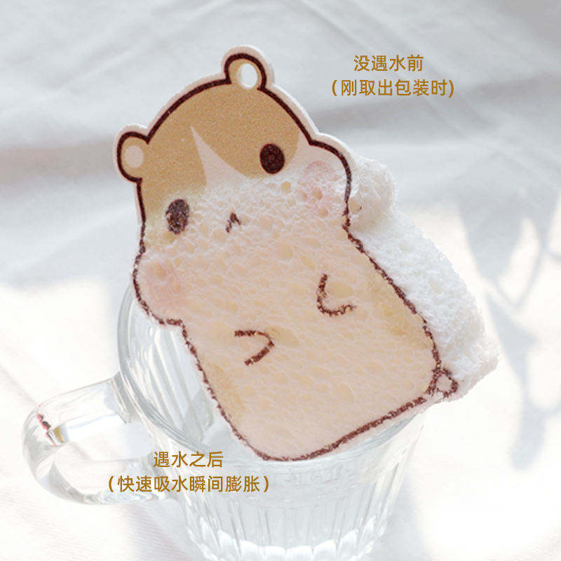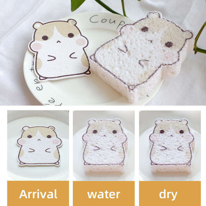 또 다른 형태의 나무 강아지 스펀지인 압축 셀룰로오스 스펀지를 보여드리겠습니다. 목재펄프면을 고온 열간압착하여 생산한 제품입니다. 압축된 셀룰로오스 스펀지는 목재 펄프 면 스펀지의 모든 장점을 유지할 뿐만 아니라 압축 후 스펀지 부피를 줄여 배송비를 낮추고 표면에 로고나 기타 디자인을 인쇄할 수도 있습니다. 그러면 청소가 더 재미있어집니다.