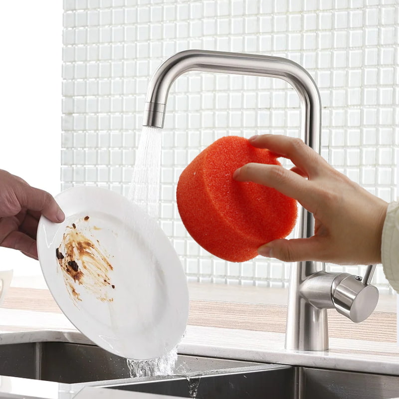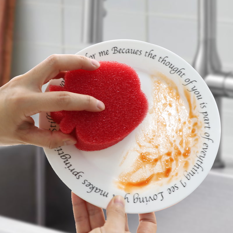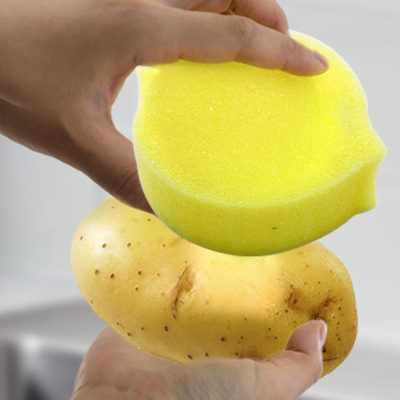 따뜻한 물에 노출되면 부드러워집니다. 수온이 32℃ 이상이면 스펀지가 빠르게 부드러워지고 섬세한 표면(눌어붙지 않는 냄비 코팅, 유리 제품, 과일 등)을 부드럽게 닦아 긁힘을 방지할 수 있습니다.